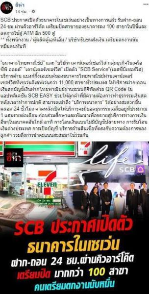 SCB ปิดธนาคาร 100 สาขาเตรียมเปิดใน 7-11 ฝาก ถอน 24 ชั่วโมง